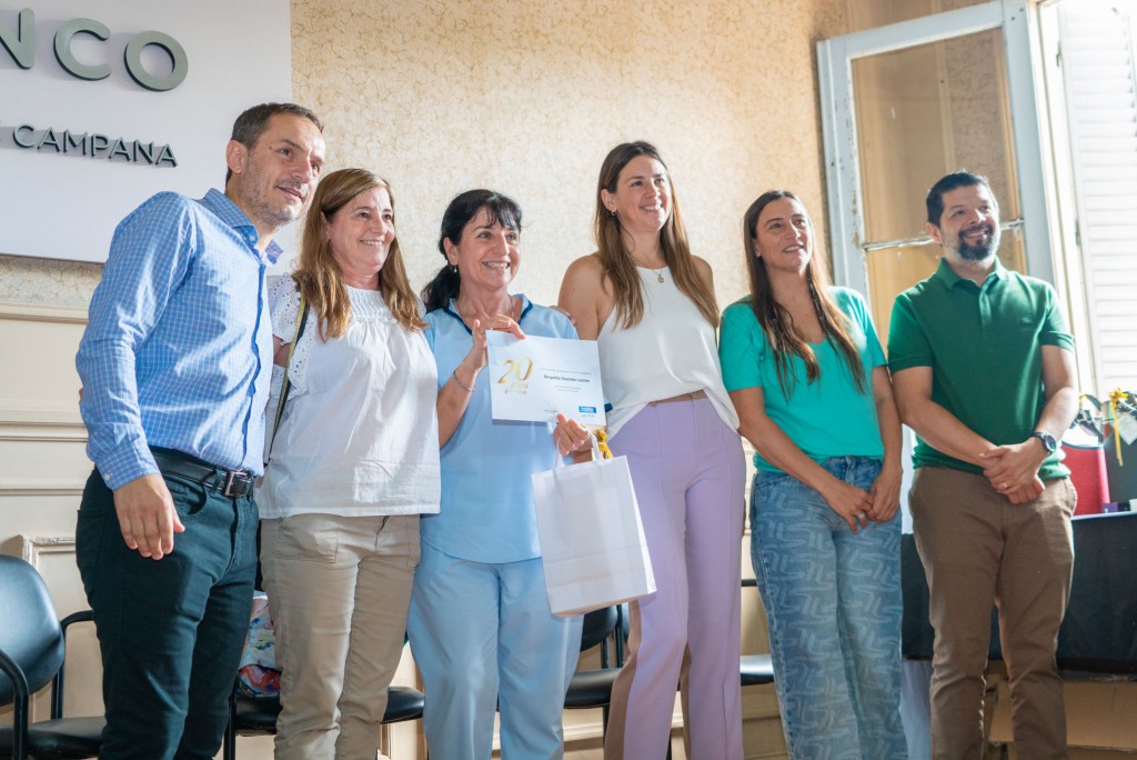 En el marco de los 20 años de servicio, recibieron sus reconocimientos Caoduro Fabiana Eda; Romano Fernando Cesar; Barragan Sergio Oscar; Savastano Juan Andrés; Villanova Dora Irene; Centurion Gisella Mariel; Berguñan Graciela Leonor; Dell'arte Graciela Alejandra; Nani Nancy Estela; Portel Lina Nelida; Rodríguez Graciela María; Selvetti Sandra Noemi; Quiroz María Ester; Rodriguez Mariela Gabriela; Wrighton Gonzalo Lionel; Belsue Gustavo Eduardo; Gómez Benito Edmundo; Acuña Juan Abel; Mirey Eugenio Marcelo; Martinoli Carlos Hernán; Noel Norberto Cristian; Cochetti María Julieta; Rodríguez Cristian Pedro; Martella Carolina; Arona Daniel Eduardo; Heredia Flavia Soledad; Winkler Lidia Mariana; Cossali Nancy Analia; Molina Carlos Eduardo; Fernandez Eduardo Sixto; Lozano Mariano Antonio; Lorenzo Ricardo Oscar; Pedroza Luis Raul; Fracinelli Paulo Pedro; Ferrari Carolina Airi; Quintana Natalia Isabel; Abad Sandra Patricia; Díaz Gustavo Fabián; y Mendieta Lidia Mabel.