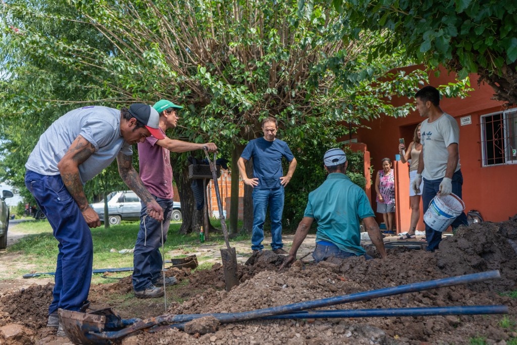 Esta labor les brinda a los vecinos la posibilidad de conectarse a la red sin costo alguno dado que, por decisión del intendente, el Municipio aporta los materiales y la mano de obra.