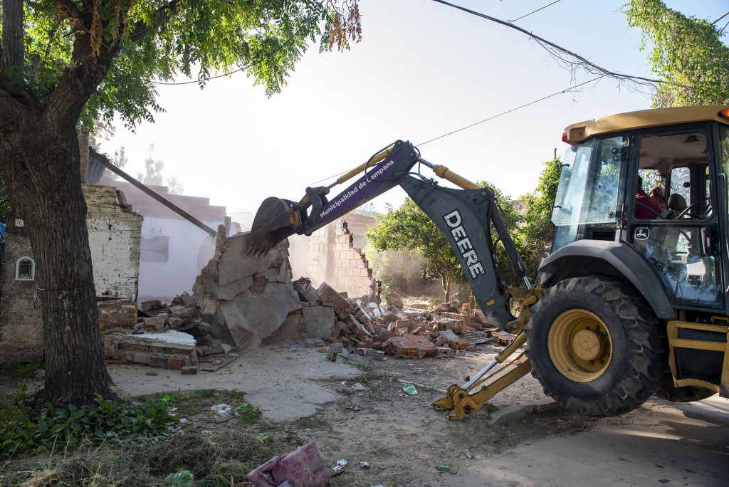 Luego de las actuaciones correspondientes se llevó adelante la demolición de la abandonada e insegura construcción donde funcionaba este búnker de venta de droga.