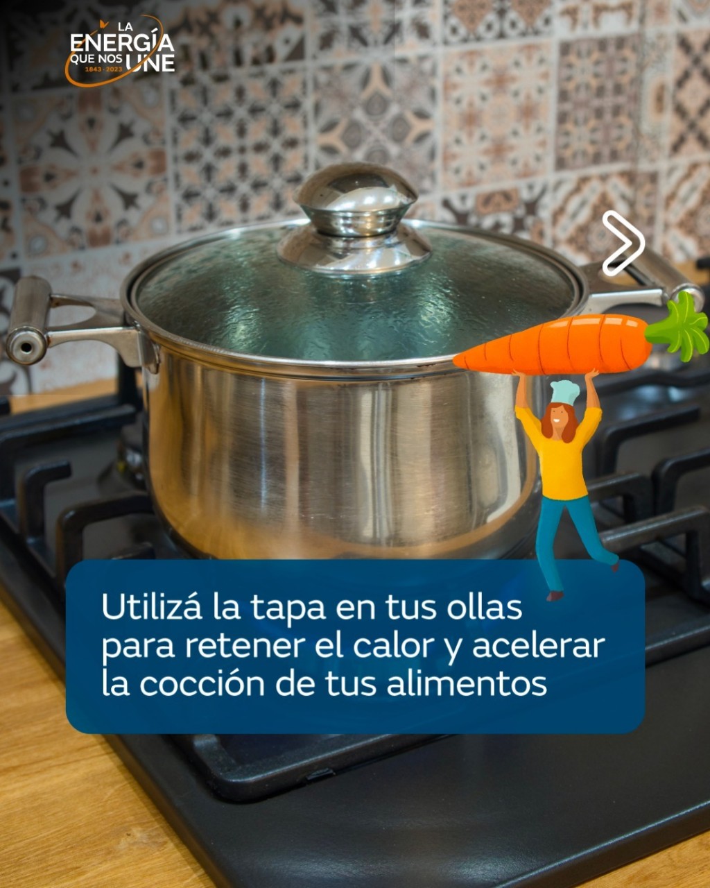 - Ajustar la llama de las hornallas al diámetro del fondo de los recipientes y manténgalos tapados. La llama que sobresale no aporta mayor calor al recipiente y si está destapado se pierde temperatura.