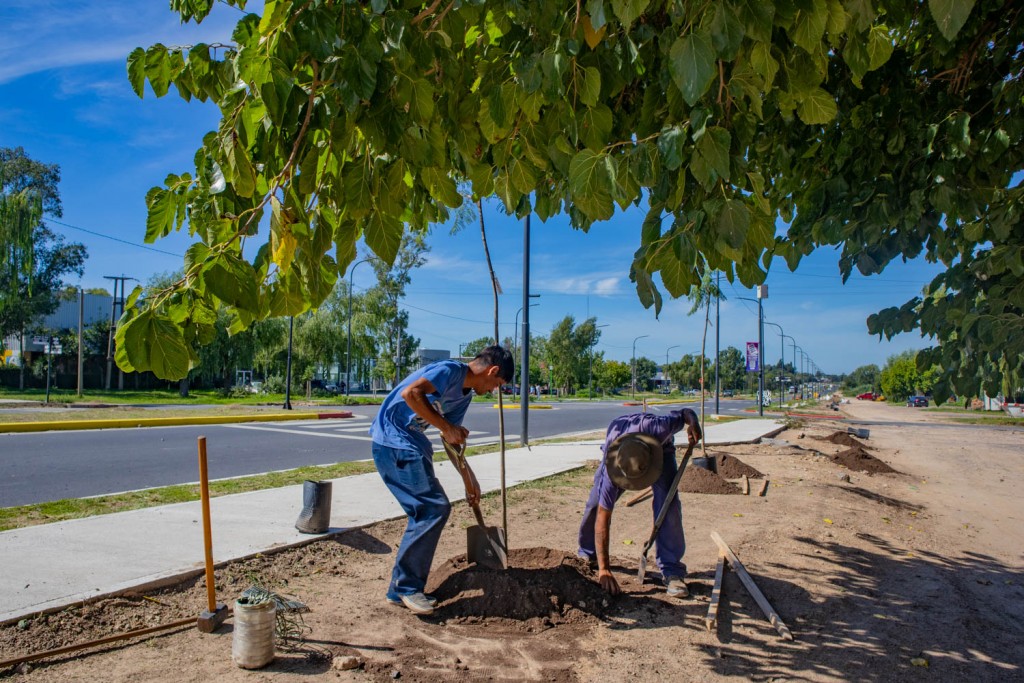 En el marco del Plan de Forestación que busca fortalecer el arbolado público y contribuir al cuidado del medio ambiente, el Municipio sigue adelante con la plantación de ejemplares en calles y avenidas de la ciudad.