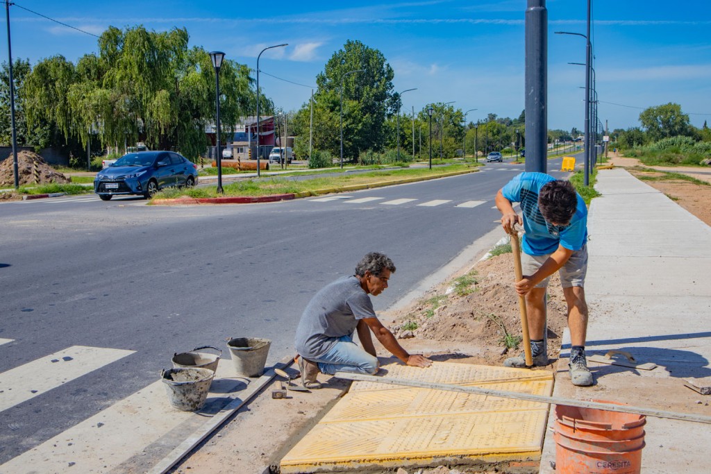 Los trabajos se ejecutan en las bocacalles de Chacabuco, Granaderos y San Lorenzo donde se colocan baldosas para optimizar las conexiones entre la vereda y la calzada, brindando mayor accesibilidad.