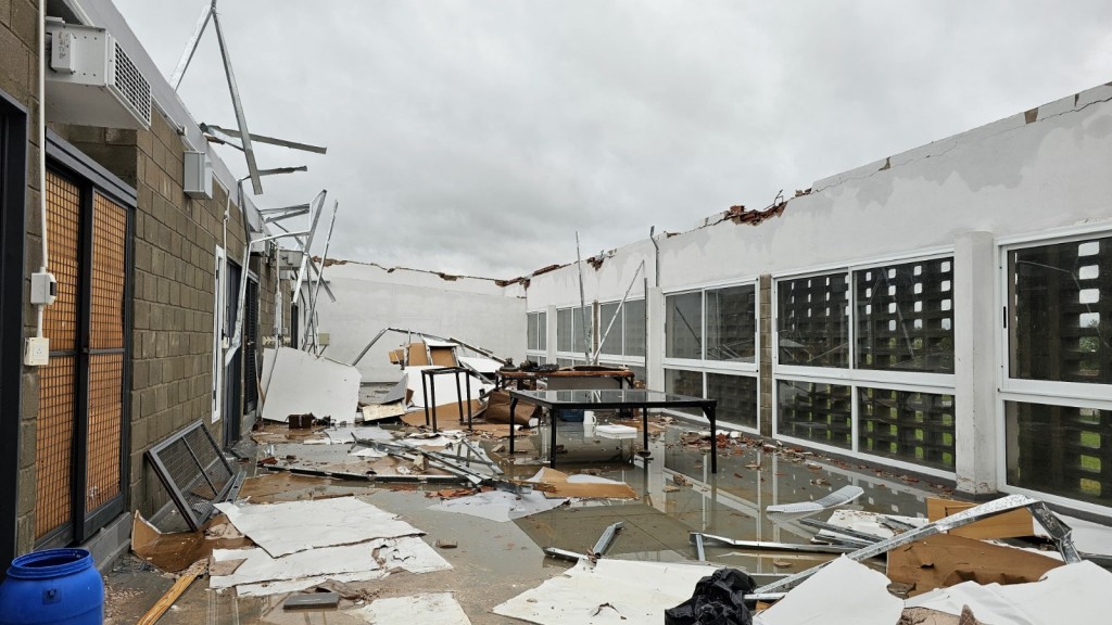 Las serias condiciones meteorológicas afectaron la estructura del inmueble ubicado en Negrete entre Giachino y Crucero General Belgrano, en momentos donde se estaban dictando clases. El establecimiento suspendió toda actividad, momentáneamente.