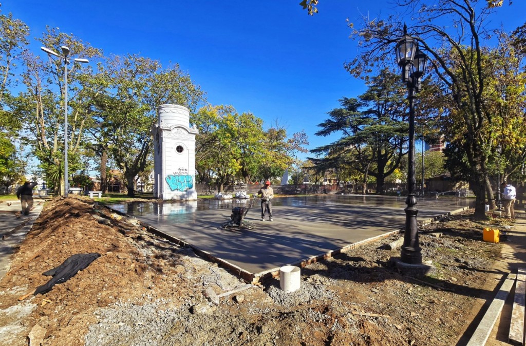 Ya se completó el hormigonado de la nueva cancha de básquet de la Plaza Italia