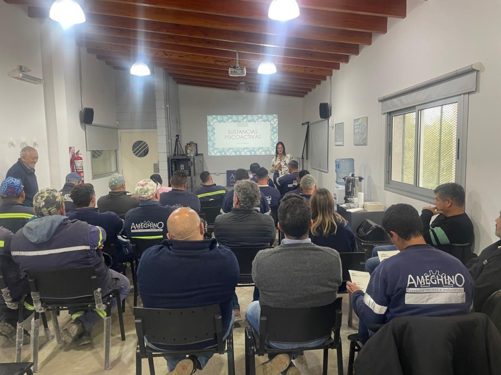 Parte del personal de Ameghino Servicios participó de una charla sobre sustancias psicoactivas que organizó la empresa.  “Esta es una actividad que depende del área de responsabilidad social (que gerencia Valeria Pacheco) y en este caso particular abordamos uno de los temas importantes para la empresa, que es el área de bienestar. El objetivo es generar conciencia en el tema de las adicciones. No es un dato menor en la sociedad de hoy y nosotros como empresa y como miembros de una sociedad no estamos ajenos a tener que abordar este tipo de circunstancias y es importante saber cómo estar preparados y desde qué lugar, sin ser profesionales, podemos acompañar”, manifestó el gerente general de Ameghino, Raúl Pacheco.