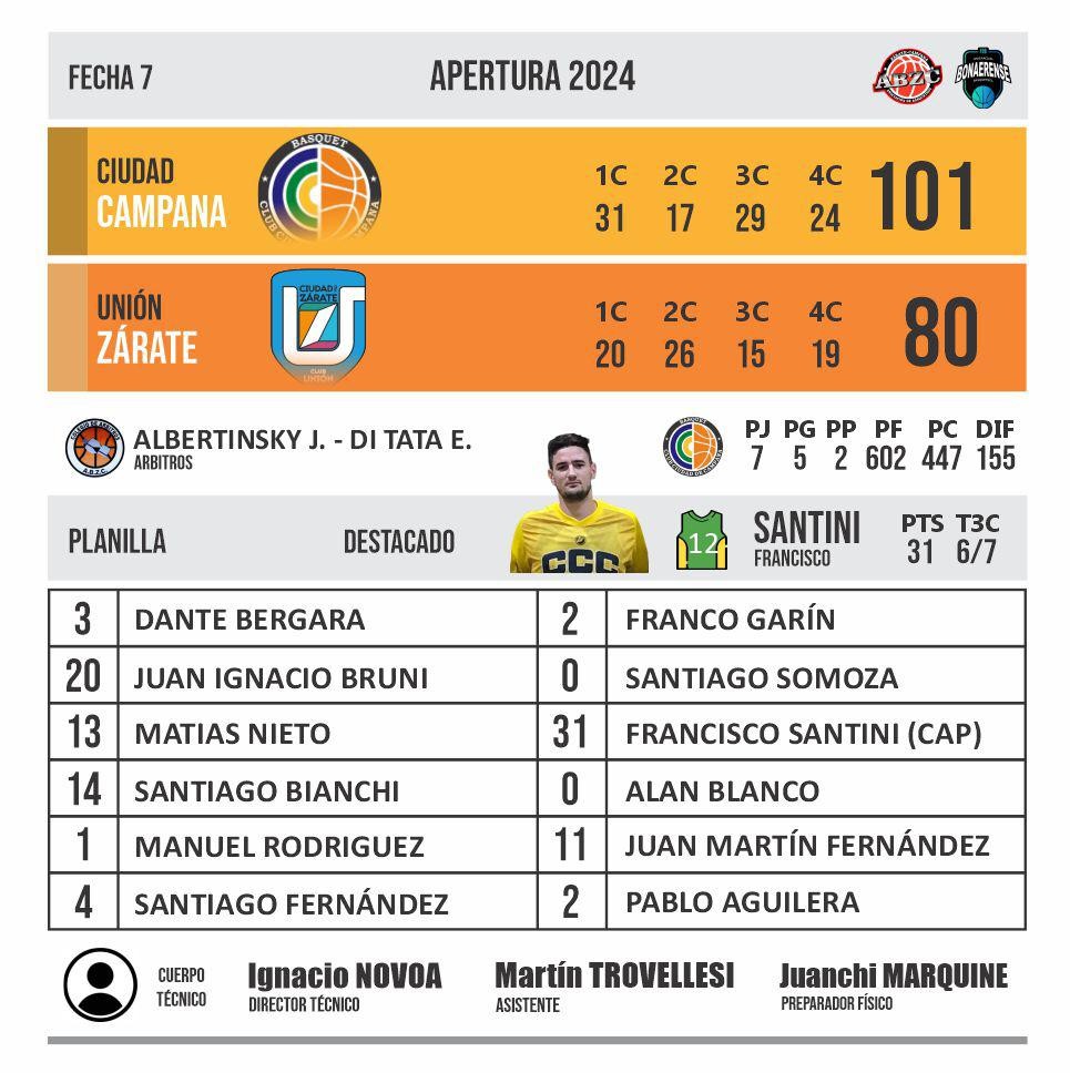 La diferencia lograda en el primer y en el tercer cuarto fueron determinantes para llevarse el juego con un imparable Francisco Santini con 31 puntos.