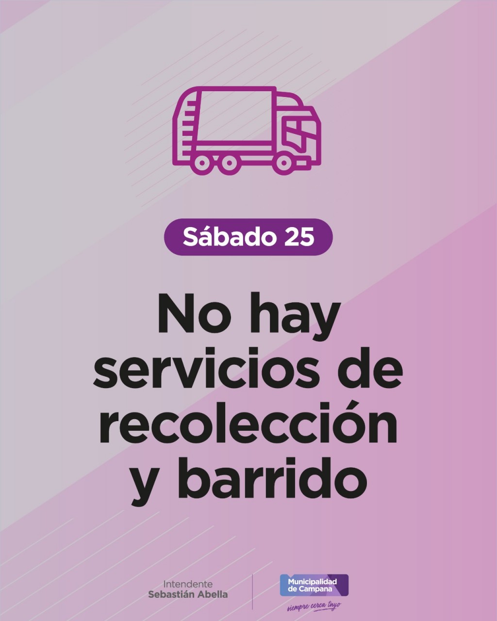 La Subdirección de Higiene Urbana del Municipio informa que este sábado 25 de mayo, feriado nacional en conmemoración a la Revolución de Mayo, no habrá recolección de residuos domiciliaria.