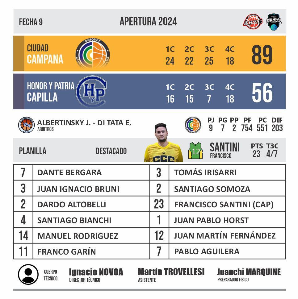 Fue victoria por 89 a 56 con Francisco Santini como goleador con 23 puntos.