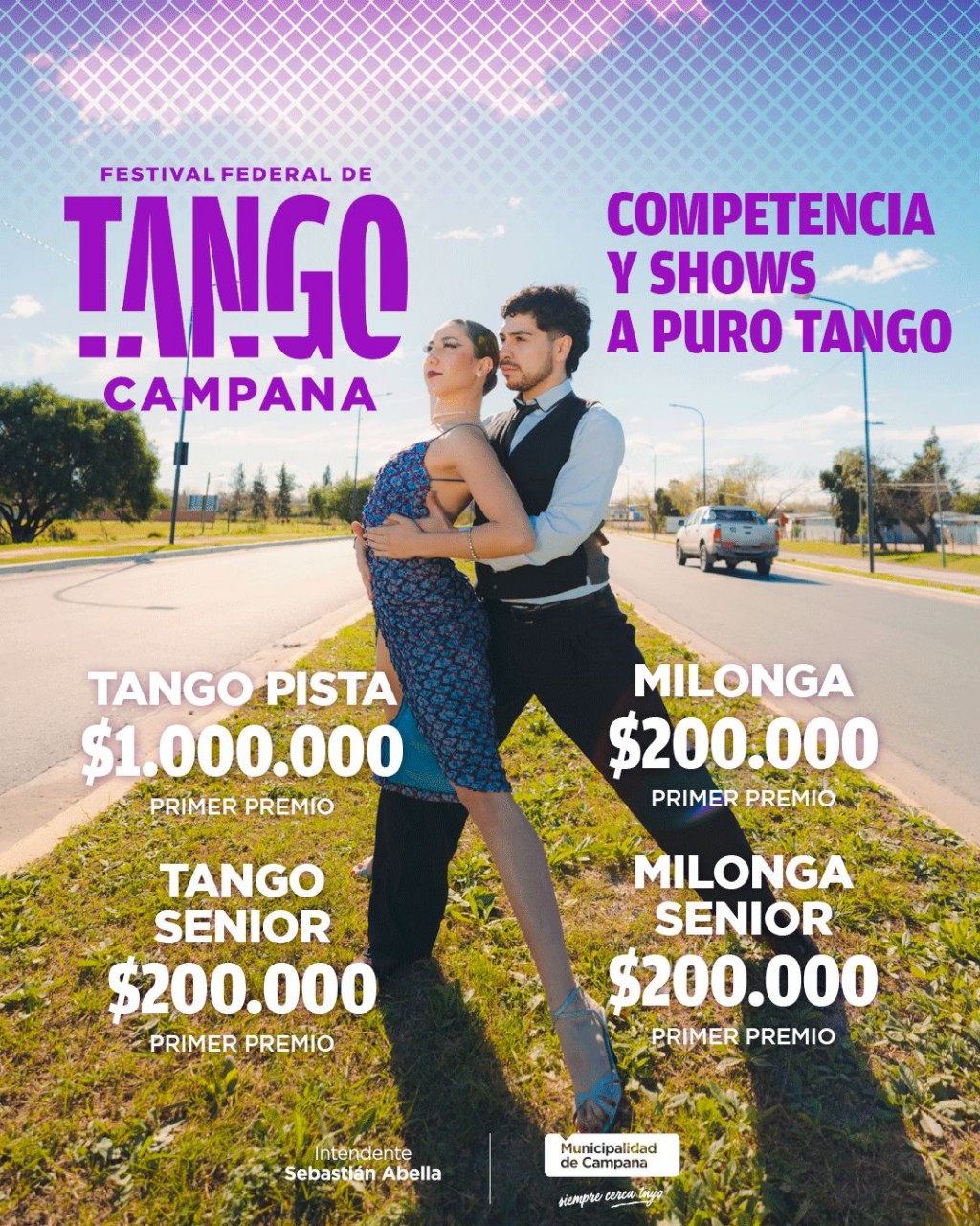 En este marco, se desarrollará una competencia en cuatro categorías que repartirán importantes premios donados por empresas de la zona: Tango Pista (18-50 años) entregará $1.000.000 a la pareja ganadora; mientras Tango Senior (+51 años), Milonga y Milonga Senior entregarán $200.000.