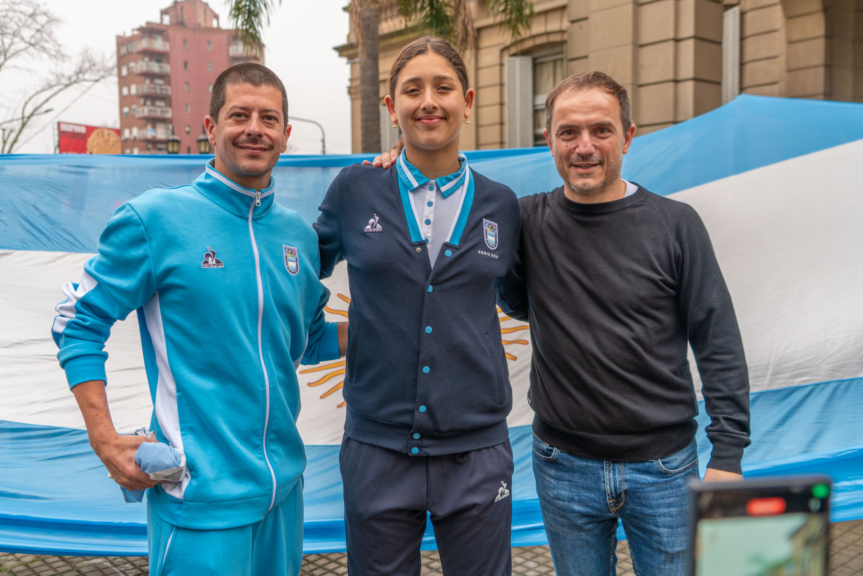 El trayecto finalizó en el Palacio Municipal, donde el jefe comunal y Elisa Abella la esperaron para entregarle el escudo de la ciudad y una placa de agradecimiento "por representar a la ciudad y al país" en la máxima cita del deporte mundial.