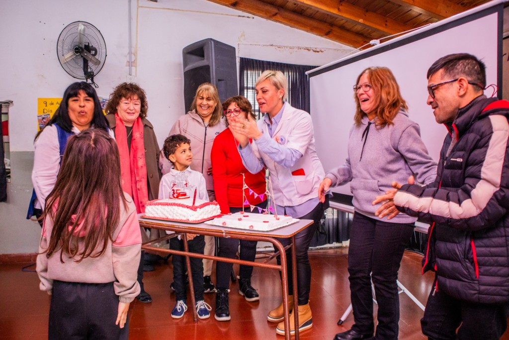 Luego de disfrutar un número a cargo de un ex alumno y un baile folklórico de familiares de la institución, todos los presentes cantaron el tradicional “Feliz cumpleaños” con una torta preparada para tal fin.