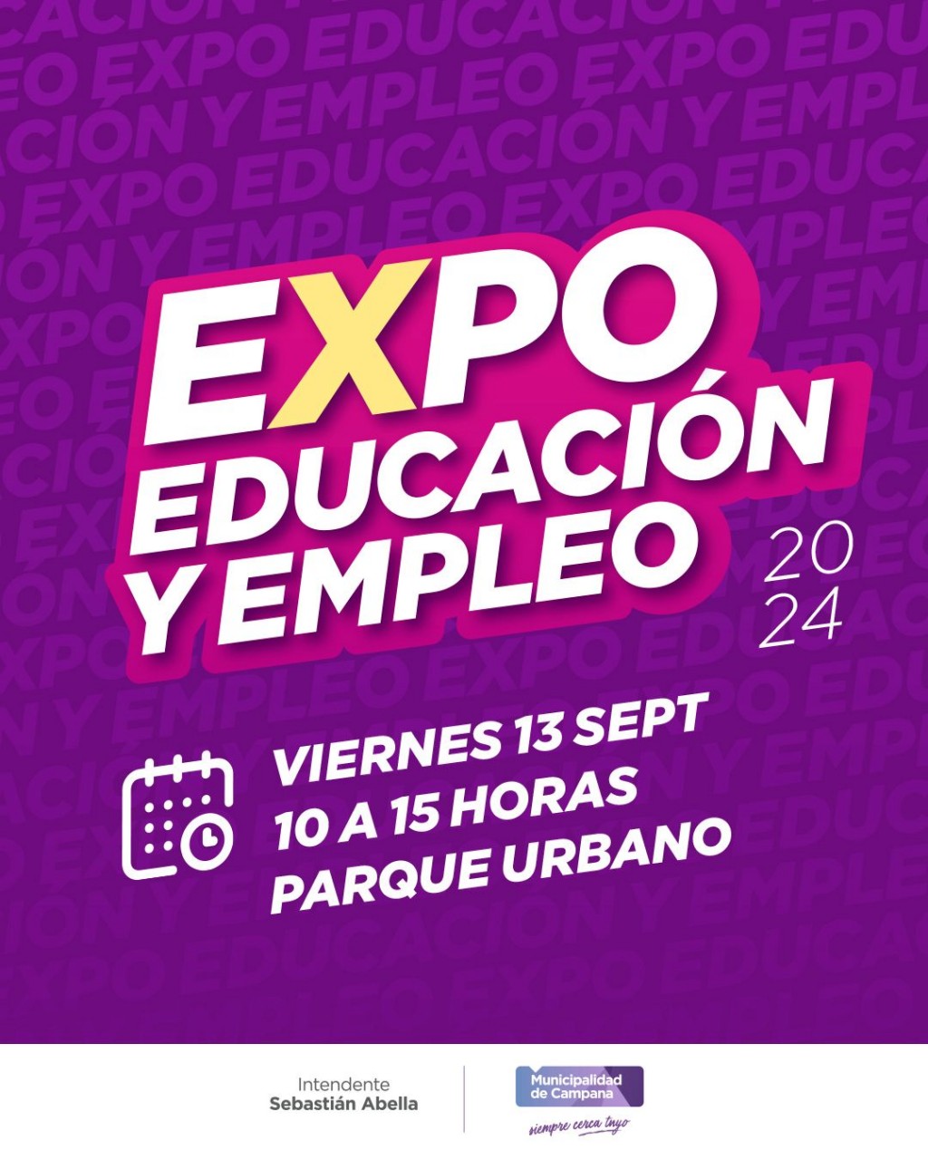 El viernes 13 de septiembre, de 10 a 15, en el Parque Urbano se desarrollará una nueva edición de “Expo Educación y Empleo”, el evento que busca brindar información acerca de las propuestas educativas y de empleo de la ciudad para que los vecinos puedan pensar en su futuro y planificar su desarrollo personal y profesional.