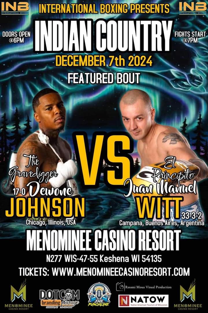El boxeador campanense volverá a combatir el 7 de diciembre en el Menominee Casino Resort en Wisconsin. En su cuarta presentación en la meca del boxeo mundial, Witt se enfrentará al invicto boxeador local Dewone Johnson en una pelea pactada en 145 libras.