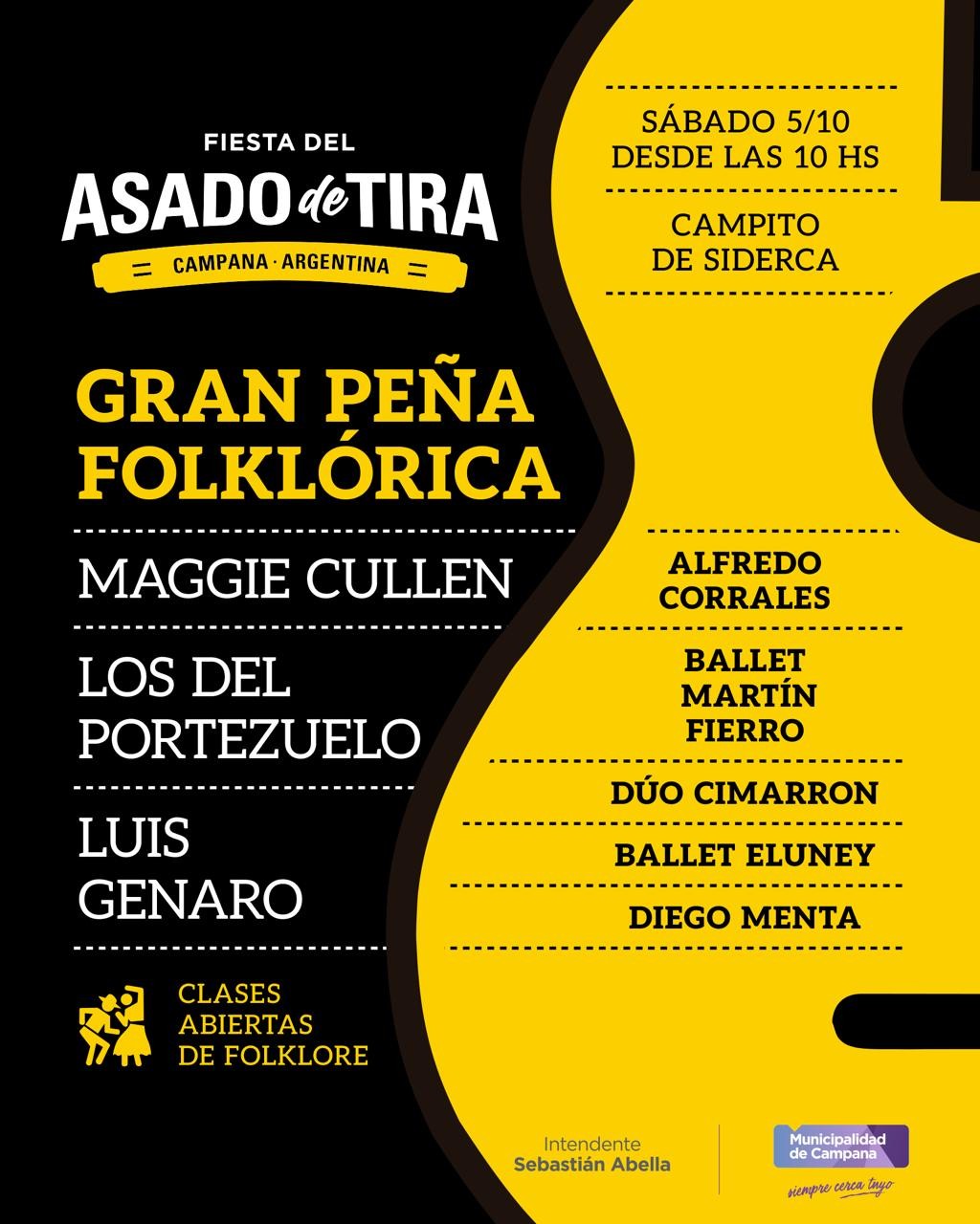 Finalmente, la peña tendrá las actuaciones estelares de Maggie Cullén, revelación de La Voz Argentina 2021, y Los del Portezuelo.