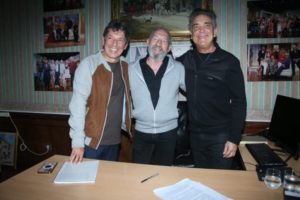 Esta tarde, en el Teatro La Casona, se selló un acuerdo que promete revolucionar la próxima temporada teatral. Los consagrados actores Nito Artaza y Sergio Gonal firmaron contrato con el productor Aldo Funes, en un clima distendido y lleno de risas, anticipando lo que será un gran éxito.