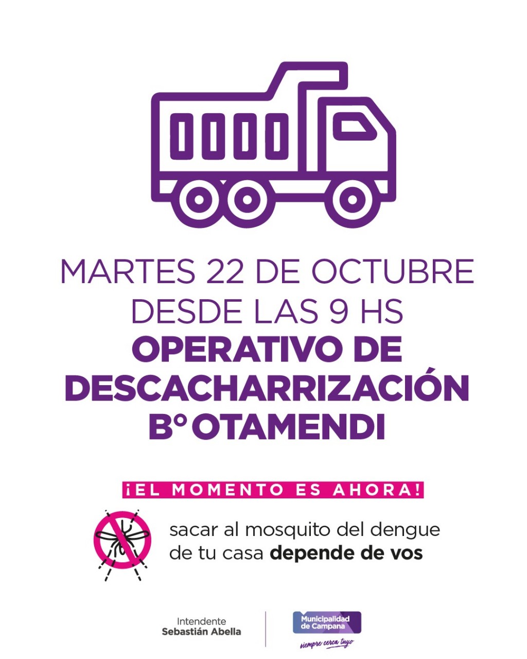 Según se informó, las fechas de los operativos de descacharrización se publicarán semanalmente en las redes sociales del Municipio, por lo que se insta a los vecinos a estar atentos e ingresar al Instagram @campanagov o Facebook Municipalidad de Campana.