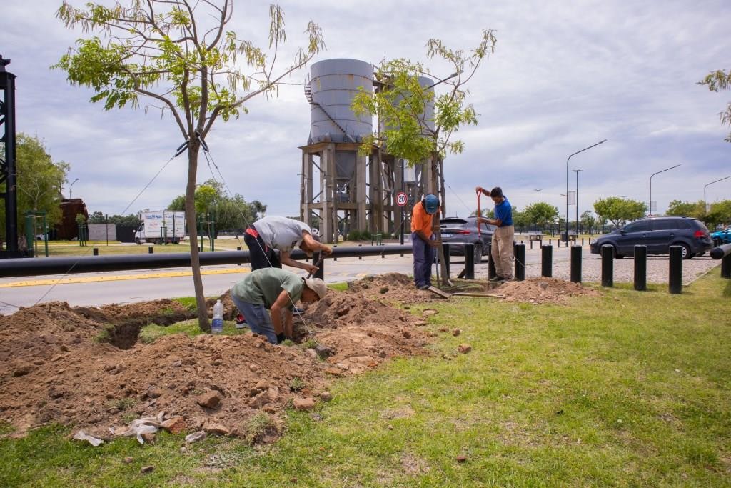El intendente Sebastián Abella supervisó el inicio de las obras, que se ejecutan lindante a la calle e incluyen la reubicación de los árboles colocados en el marco del plan de transformación del lugar.