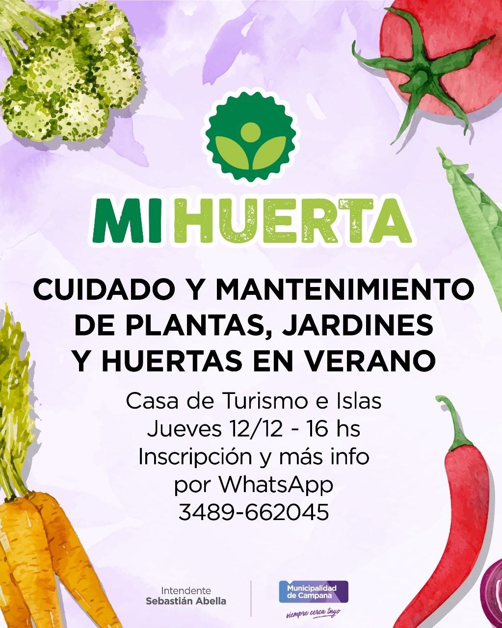 Este jueves 12 se brindará una charla sobre “Cuidado y mantenimiento de plantas, jardines y huertas en verano”. Y el jueves 19, se abordará “Cuidado de plantas y técnicas de multiplicación y esquejado”. Ambos encuentros requieren inscripción previa por WhatsApp.