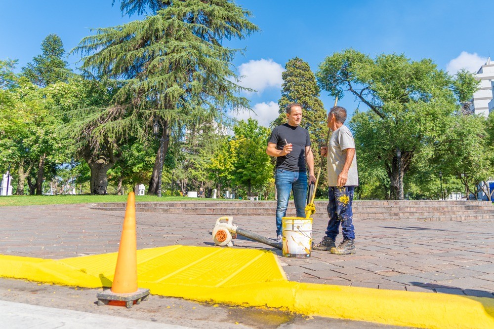 Hasta allí llegó hoy el intendente Sebastián Abella para supervisar el desarrollo de los trabajos a cargo de la Secretaría de Espacio Público que incluyen la pintura de cordones y rampas de acceso para personas con discapacidad, mejoras en el parquizado y tareas de bacheo de hormigón sobre la avenida Varela con el fin de brindar un entorno más agradable y seguro a quienes visitan el lugar.