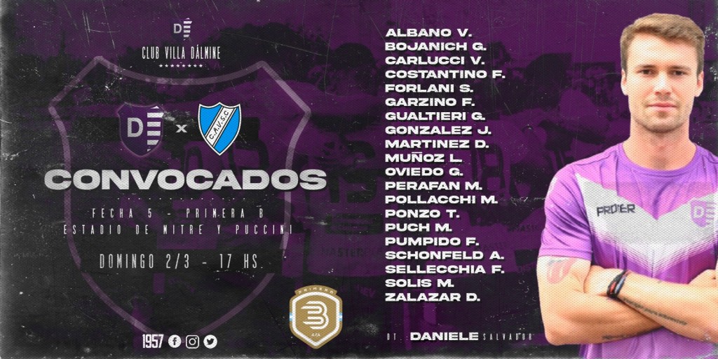Nómina de 20 jugadores para el partido de mañana frente a Villa San Carlos. Vuelve Alan Schonfeld tras cumplir las dos fechas de suspensión, mientras que Ezequiel Ramón y Juan Fernández deberán cumplir una fecha por haber sido expulsados frente a Real Pilar.